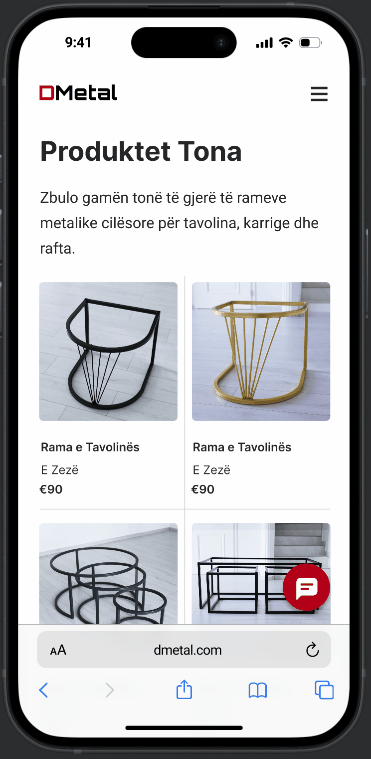 DMetal is a small company based in Kosovo, a country in the Balkans, specializing in the creation of customizable metal frames for various furniture items. DMetal offers a range of metal products, including chairs, tables, and shelves. The company is committed to providing quality metalwork, and its clients often seek customization options for their specific needs.